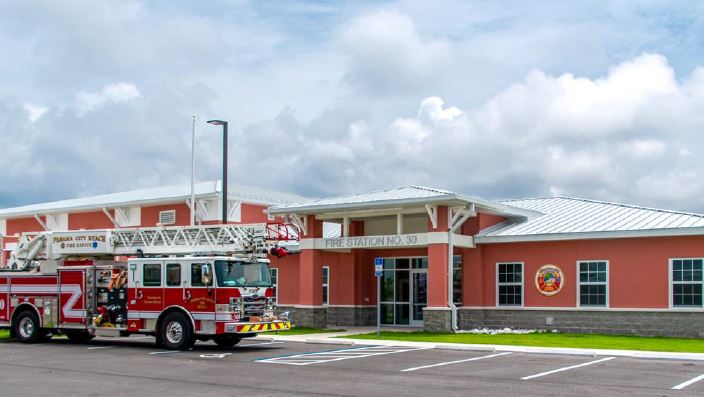 WEI provided mechanical, plumbing, and fire protection design. Mechanical design included split dx units with 100% OAU for humidity control, added a hood and related fans for a kitchen, and utilized heaters along with high volume low speed fans in the apparatus bays. Plumbing included gas water heaters, as well as drain trough for an extractor. Gas was routed to water heaters as well as heaters in the apparatus bay. Fire protection design included a wet-pipe sprinkler system.